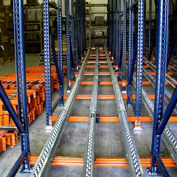 The Pallet Flow Rack system is specifically designed for high density and fast moving traffic.